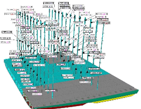 ????實(shí)現(xiàn)這一突破的是黃埔文沖為新加坡太古公司建造的2750箱集裝箱船2號船H5531。通過全站儀采集艙內(nèi)導(dǎo)架數(shù)據(jù),利用計(jì)算機(jī)將導(dǎo)架間數(shù)據(jù)模型與集裝箱數(shù)據(jù)模型進(jìn)行對比分析,從而實(shí)現(xiàn)模擬試箱。通過對H5531船全船導(dǎo)架數(shù)字化模擬,并將其與傳統(tǒng)實(shí)體試箱進(jìn)行對比,狀態(tài)完全吻合。