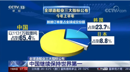 全球權(quán)威航運(yùn)造船機(jī)構(gòu)公布的最新數(shù)據(jù)顯示,今年上半年,全球造船業(yè)三大指標(biāo),中國(guó)再次領(lǐng)先,繼續(xù)保持世界第一的紀(jì)錄。