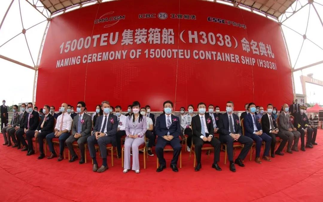 8月27日,由中國船舶集團(tuán)有限公司旗下滬東中華聯(lián)合中船貿(mào)易為法國達(dá)飛海運集團(tuán)建造的15000TEU超大型集裝箱系列船首制船“達(dá)飛·和風(fēng)”號命名交付。這是中法兩國船海巨頭全面落實2019年中國國家主席習(xí)近平和法國總統(tǒng)馬克龍見證簽署的戰(zhàn)略合作框架協(xié)議的最新成果。同時,也標(biāo)志著“CSSC超大型箱船譜系”又添“新丁”,實現(xiàn)了對全球超大型集裝箱船發(fā)展的引領(lǐng)。