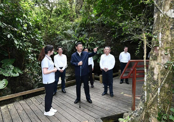 11日下午,習(xí)近平總書記到海南島中南部的五指山市考察調(diào)研。海南熱帶雨林國家公園是我國首批5個(gè)國家公園之一。習(xí)近平總書記深入五指山片區(qū),沿木棧道步行察看公園生態(tài)環(huán)境,不時(shí)停下腳步,詢問樹木生長、水源涵養(yǎng)、動(dòng)植物資源保護(hù)等情況。