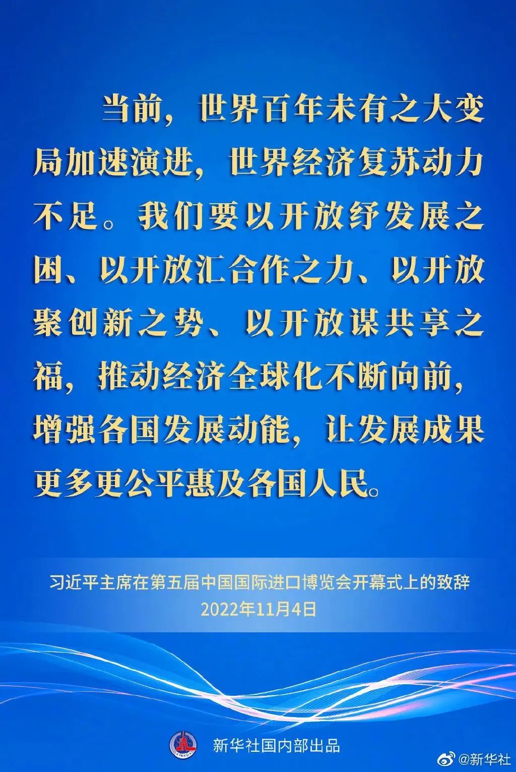 習(xí)近平強(qiáng)調(diào),開放是人類文明進(jìn)步的重要?jiǎng)恿?,是世界繁榮發(fā)展的必由之路。當(dāng)前,世界百年未有之大變局加速演進(jìn),世界經(jīng)濟(jì)復(fù)蘇動(dòng)力不足。我們要以開放紓發(fā)展之困、以開放匯合作之力、以開放聚創(chuàng)新之勢(shì)、以開放謀共享之福,推動(dòng)經(jīng)濟(jì)全球化不斷向前,增強(qiáng)各國(guó)發(fā)展動(dòng)能,讓發(fā)展成果更多更公平惠及各國(guó)人民。