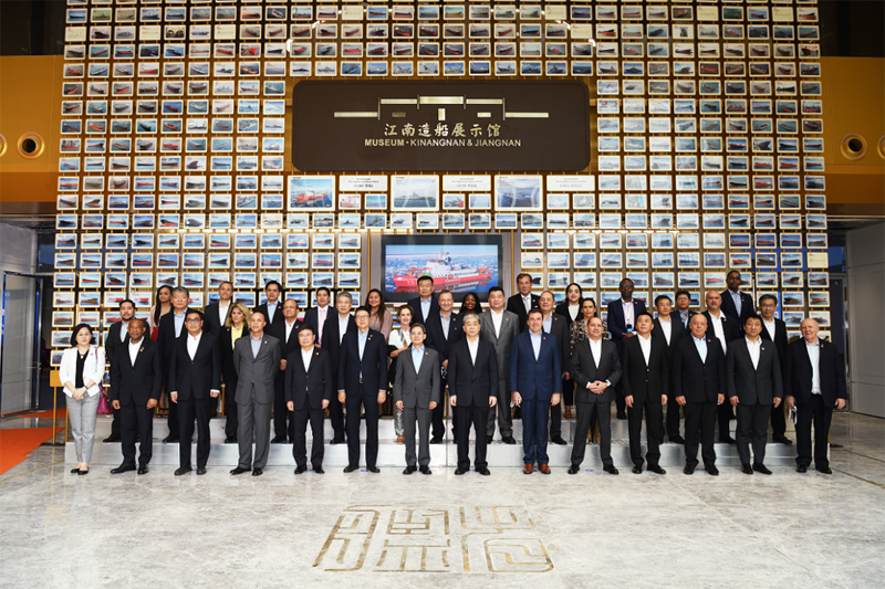 使節(jié)代表團先后參觀了中國船舶集團旗下滬東中華、江南造船,聽取了兩家企業(yè)重點產(chǎn)品、經(jīng)營生產(chǎn)發(fā)展的總體介紹,并赴船塢、碼頭實地了解了在建的目前全球最大雙燃料23000TEU集裝箱船以及其他高技術(shù)、高附加值船舶建造情況。