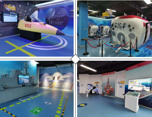 整個展館內(nèi)分布著護(hù)航體驗區(qū)、VR綜合體驗區(qū)、航母艦室漫游體驗區(qū)、近海VR鉆井平臺體驗區(qū)、艦載機起飛體感指揮體驗區(qū)、航母艦載機空體驗區(qū)等,可以讓參觀者模擬駕駛我國船海重器,親身感受搏浪滄海、護(hù)衛(wèi)海疆的震撼與自豪,使得船舶館成為海洋特色鮮明、模型館藏豐富、互動體驗感強的軍事科普教育展館和軍事文化娛樂園區(qū)。