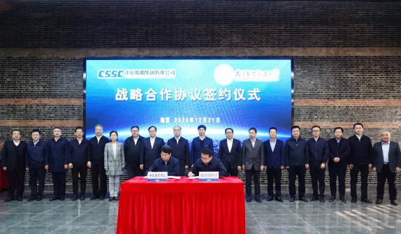 12月21日,中國船舶集團有限公司在南京分別與南京航空航天大學、江蘇科技大學簽署戰(zhàn)略合作協(xié)議。中國船舶集團黨組書記、董事長雷凡培,黨組副書記、總經(jīng)理楊金成,黨組成員、副總經(jīng)理錢建平、杜剛,南航黨委書記鄭永安,黨委副書記、校長單忠德,江科大黨委書記葛世倫,黨委副書記、校長周南平等領導出席簽約儀式。