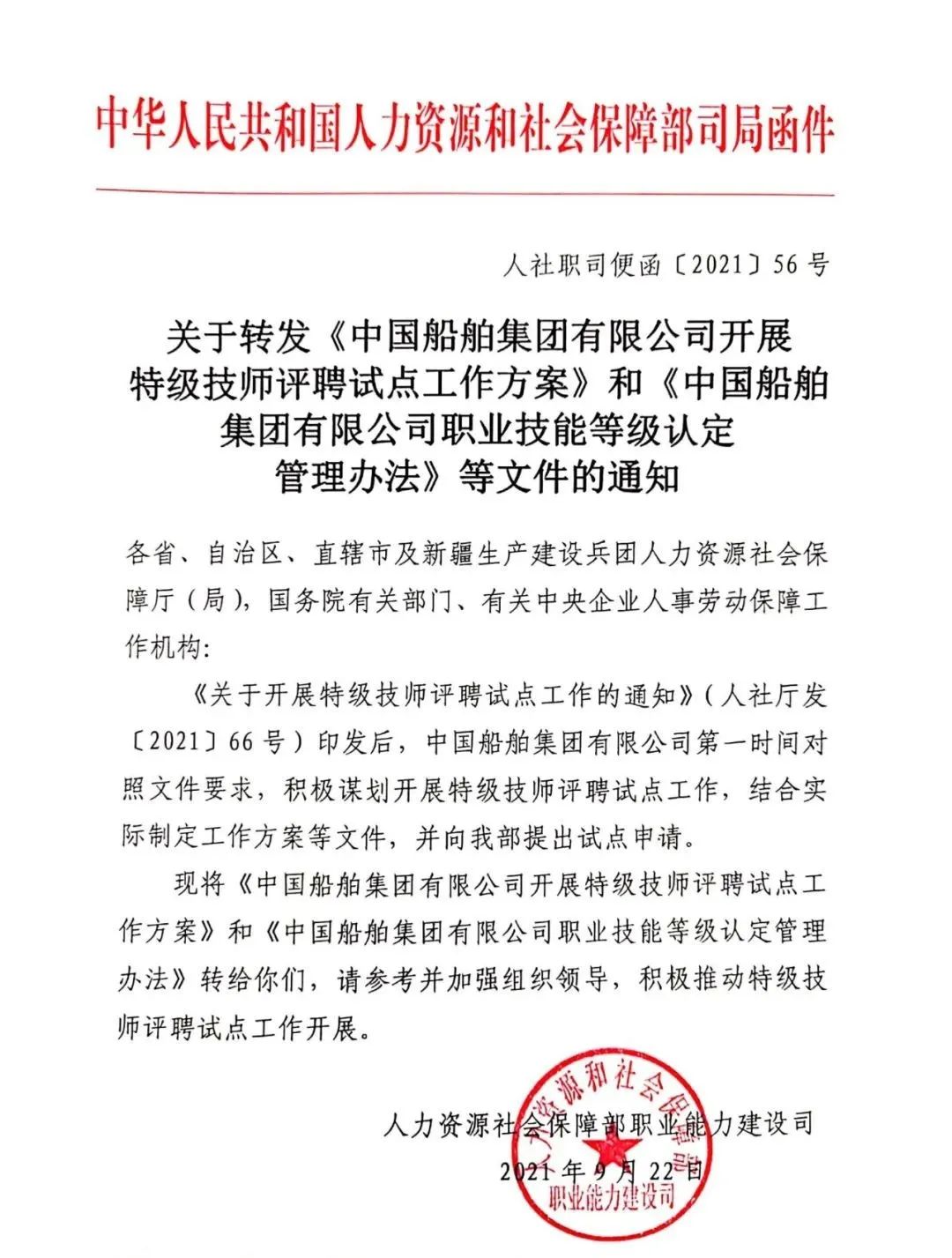 通知發(fā)布后,中國船舶集團(tuán)第一時(shí)間對(duì)照文件要求,積極謀劃開展特級(jí)技師評(píng)聘試點(diǎn)工作,集團(tuán)公司黨組審議出臺(tái)《職業(yè)技能等級(jí)認(rèn)定管理辦法》,進(jìn)一步明確以“特級(jí)技師”為塔尖的六個(gè)技能等級(jí),第一時(shí)間制定特級(jí)評(píng)聘工作方案,積極向人社部申報(bào)特級(jí)技師評(píng)聘試點(diǎn)。同時(shí)部署了2021年特級(jí)技師評(píng)審工作,今年計(jì)劃增加80名左右特級(jí)技師。