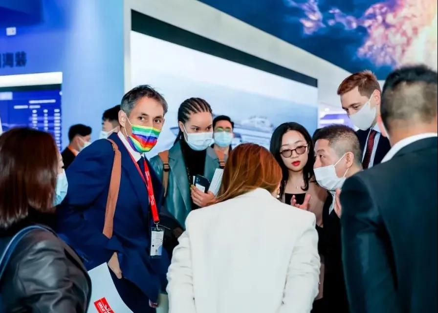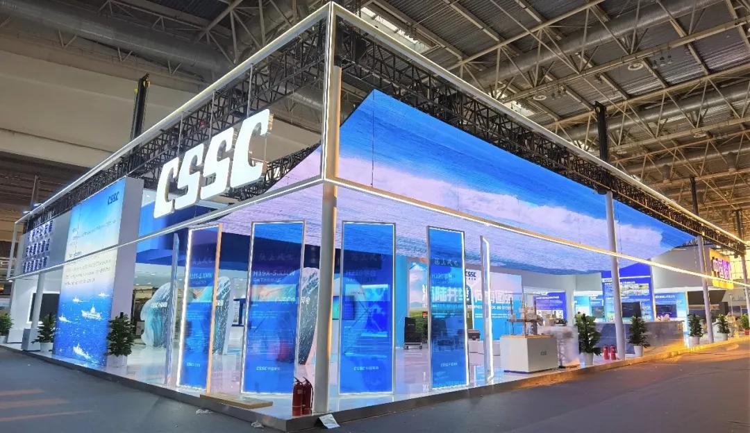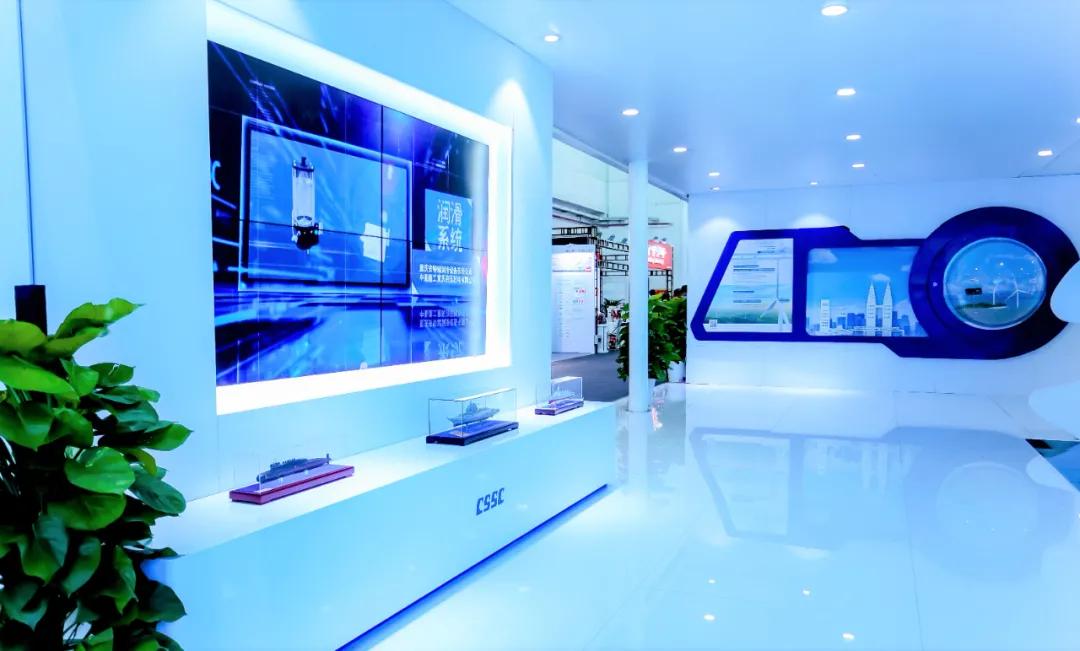 中國船舶集團展臺摒棄了“傳統色彩矩陣”,用“深海藍”加 “風機白”打造出大氣磅礴的開合式復合空間域,細節(jié)上則采用生態(tài)為先、大道至簡、科技為尚三大設計語言,將“風傳送”“海推動”“碳排放”業(yè)務生態(tài)鏈條進行了全方位的解構,吸引了眾多觀展人士駐足。