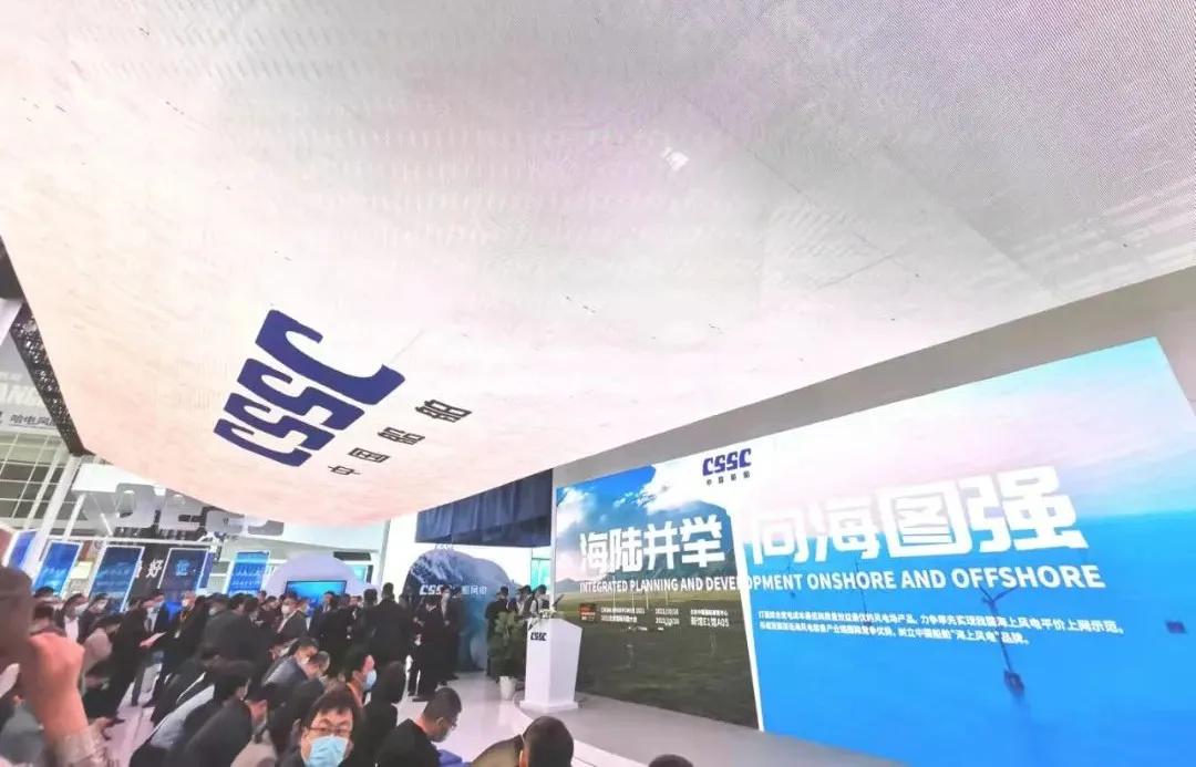 此次展會上,中國船舶集團以“創(chuàng)新引領、綠色發(fā)展強使命,海陸并舉、向海圖強顯擔當”為主題,在900平方米的歷屆風能展最大展臺上,按照建設開發(fā)、整機制造、關鍵核心部件和產業(yè)配套四個版塊分區(qū)展出。