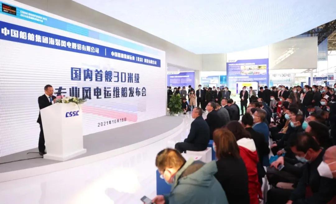 在風能展上,中國海裝與遠舟科技聯合設計制造的國內首艘30米級專業(yè)風電運維船發(fā)布,最大裝載38噸,可抗浪高4米,可搭乘12名運維人員和6名船員,具有高強度、輕重量的結構特點和優(yōu)良的安全性、快速性、防腐性、耐波性等,將于今年正式投運。