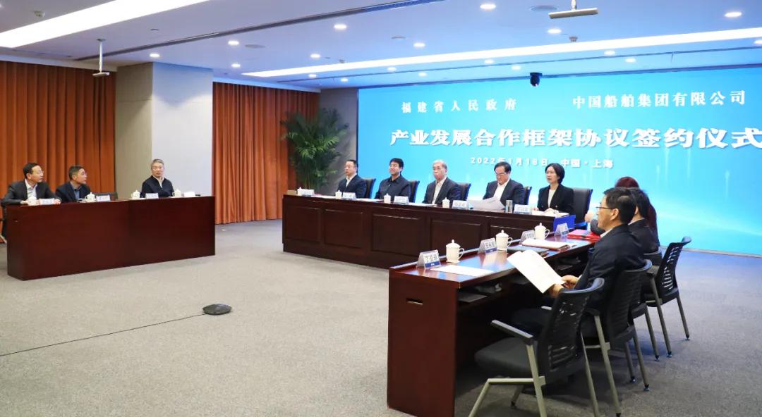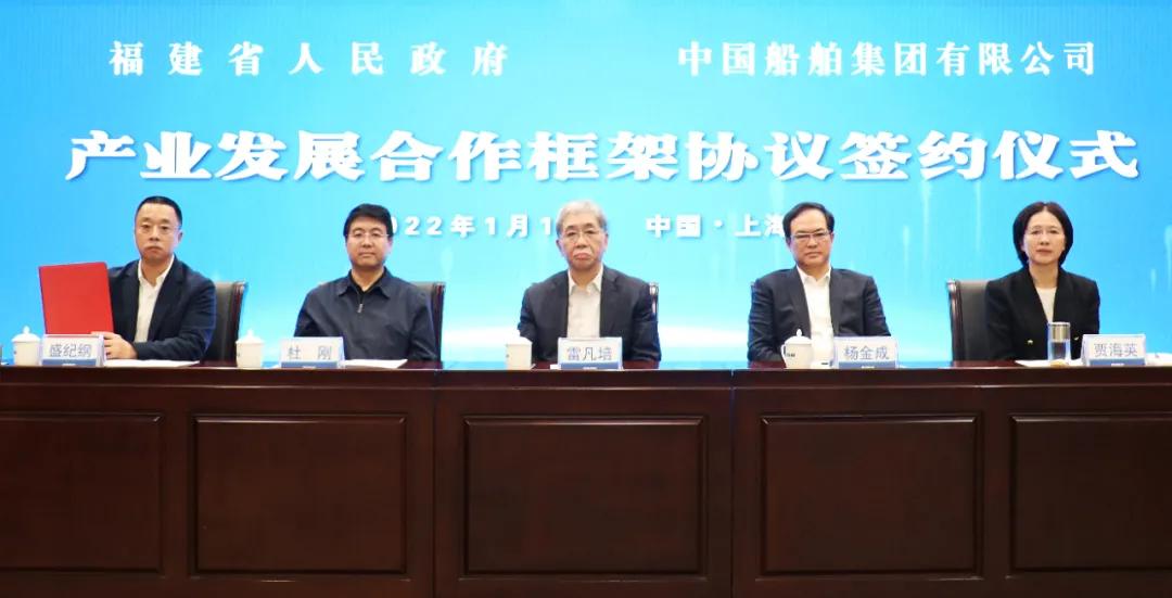 1月18日,中國船舶集團(tuán)有限公司與福建省人民政府通過“云簽約”方式簽署戰(zhàn)略合作協(xié)議。中國船舶集團(tuán)黨組書記、董事長雷凡培,黨組副書記、總經(jīng)理?xiàng)罱鸪桑h組副書記、董事杜剛,黨組成員、總會計(jì)師賈海英,黨組成員、副總經(jīng)理盛紀(jì)綱;福建省委書記尹力,省委副書記、代省長趙龍,省委常委、常務(wù)副省長郭寧寧,省委常委、秘書長吳偕林,副省長康濤出席簽約儀式。盛紀(jì)綱、郭寧寧分別代表雙方在協(xié)議上簽字。
