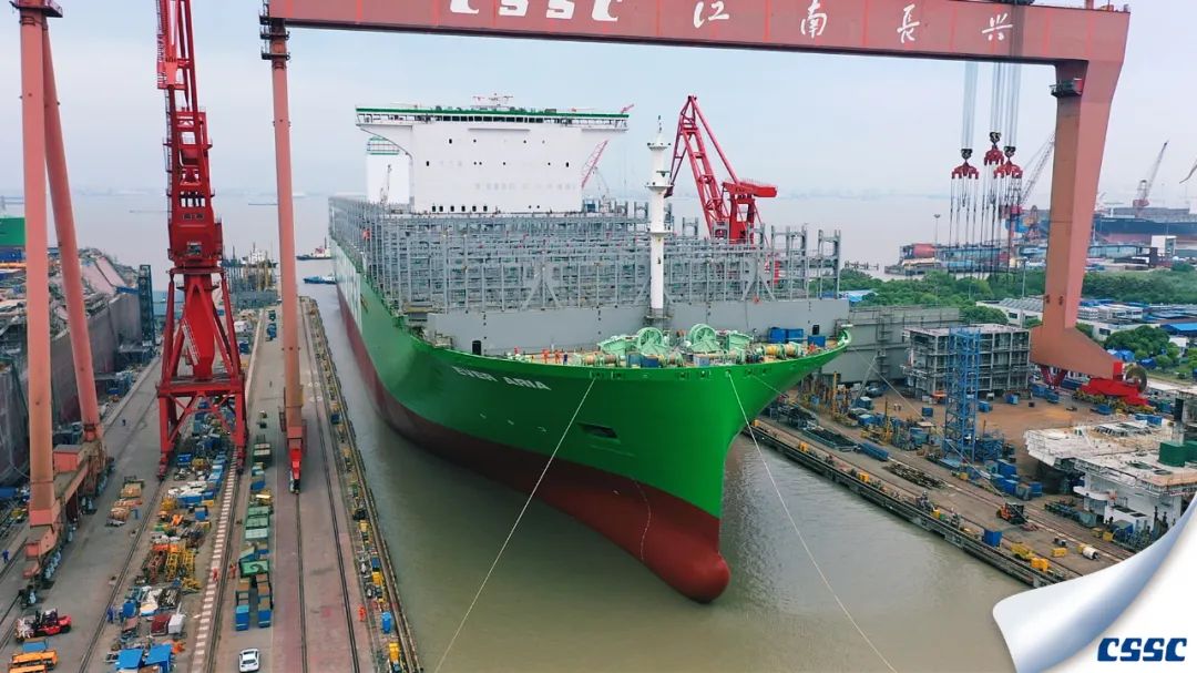 新船出塢前,造船工人對船舶外貌進行補漆,以最靚麗的姿態(tài)迎接船舶出塢。
