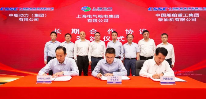 2022年9月30日,中國船舶集團(tuán)旗下中船動力(集團(tuán))有限公司、中國船舶重工集團(tuán)柴油機(jī)有限公司與上海電氣集團(tuán)旗下上海電氣核電集團(tuán)有限公司在上海簽署了長期合作協(xié)議。中國船舶集團(tuán)黨組成員、副總經(jīng)理盛紀(jì)綱,上海電氣集團(tuán)黨委委員、副總裁金孝龍出席簽約儀式。