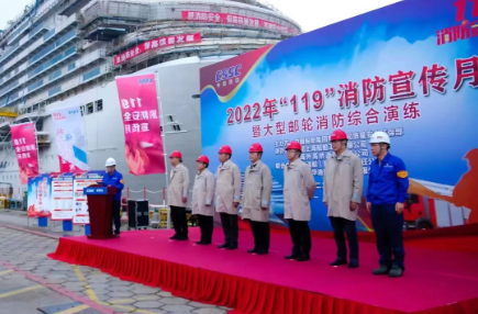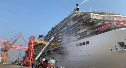 船舶建造過程中動(dòng)火作業(yè)多、交叉作業(yè)多、有限空間多,消防安全一直以來都是企業(yè)安全生產(chǎn)工作的重點(diǎn)。本次演練選取大型郵輪作為演練對(duì)象,情景模擬船上發(fā)現(xiàn)火情后,外高橋造船以及聯(lián)合演練單位的消防隊(duì)伍實(shí)施協(xié)同救援,包括初期火情應(yīng)對(duì)、應(yīng)急報(bào)告、船上人員疏散、被困人員搜救、滅火等內(nèi)容,檢驗(yàn)了企業(yè)應(yīng)對(duì)突發(fā)火情的快速反應(yīng)能力和協(xié)同作戰(zhàn)能力。