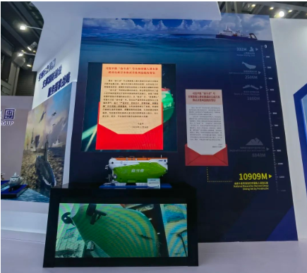 吸引眼球的還有“奮斗者”號載人潛水器,以及雪龍-2號、遠望7號等深海極地重大裝備、航天測量船家族。在展臺處,不僅播放了“奮斗者”號萬米深潛坐底激動人心的畫面,還展示了習(xí)近平總書記的賀信,激勵中國船舶人踔厲奮發(fā)、勇毅前行。