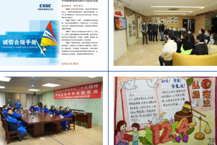 風(fēng)帆公司、綜合院等單位發(fā)布合規(guī)手冊(cè),組織簽署合規(guī)承諾和合規(guī)考試;中船澄西、投資公司、七一一所、七二六所等單位精心制作并設(shè)置憲法宣傳展板;江南造船、中船九院等單位開展憲法法律知識(shí)問答,實(shí)現(xiàn)以考促學(xué);廣州公司持續(xù)開展“送法進(jìn)校園”憲法宣傳活動(dòng),將法治學(xué)習(xí)延伸到所屬技校、幼兒園;七一〇所、七一五所等單位開展法律咨詢志愿服務(wù)活動(dòng),對(duì)外樹立良好的“法治形象”;駐香港企業(yè)中船資本、中船租賃大力宣傳憲法及香港基本法、香港國(guó)安法,提升員工憲法法治意識(shí)。