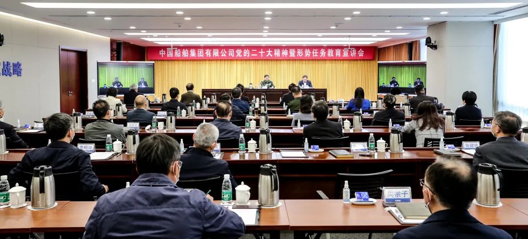 1月30日,中國船舶集團(tuán)有限公司召開黨的二十大精神暨形勢任務(wù)教育宣講會,動員集團(tuán)上下全面準(zhǔn)確領(lǐng)會黨的二十大精神,深刻認(rèn)識當(dāng)前世界百年未有之大變局,更好把握當(dāng)前國際國內(nèi)形勢,進(jìn)一步團(tuán)結(jié)帶領(lǐng)廣大干部職工踔厲奮發(fā)、勇毅前行,加快推進(jìn)世界一流船舶集團(tuán)建設(shè)。中國船舶集團(tuán)黨組副書記、總經(jīng)理?xiàng)罱鸪芍鞒謺h,黨組副書記、董事杜剛,黨組成員、副總經(jīng)理孫偉,紀(jì)檢監(jiān)察組組長、黨組成員李佳穎,黨組成員、總會計師賈海英,黨組成員、副總經(jīng)理盛紀(jì)綱出席會議。會議邀請十三屆全國政協(xié)常委、提案委員會副主任,中央軍委聯(lián)合參謀部原上將副總參謀長戚建國作宣講報告。
