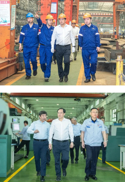 在武昌造船,楊金成深入生產(chǎn)一線(xiàn)詳細(xì)了解情況,并聽(tīng)取了武昌造船關(guān)于生產(chǎn)經(jīng)營(yíng)和未來(lái)發(fā)展規(guī)劃的匯報(bào)。在東儀科工,楊金成前往生產(chǎn)車(chē)間調(diào)研產(chǎn)品生產(chǎn)情況,并聽(tīng)取了七〇五所/中船華雷及東儀科工關(guān)于生產(chǎn)經(jīng)營(yíng)及發(fā)展規(guī)劃的匯報(bào)。