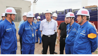 6月8日下午、9日上午,在龍穴基地調(diào)研期間,溫剛走進(jìn)造修船生產(chǎn)現(xiàn)場,登上多型重點(diǎn)在建船舶,察看車間、船塢、船臺等生產(chǎn)區(qū)域,與企業(yè)班子成員深入交流,聽取了黃埔文沖、廣船國際產(chǎn)業(yè)發(fā)展、深化改革、科技創(chuàng)新、人才隊(duì)伍建設(shè)、精益管理、黨的建設(shè)等有關(guān)情況的匯報。