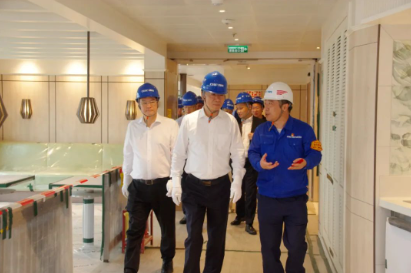辛國斌一行深入考察國產(chǎn)首制大型郵輪建造現(xiàn)場,實地了解大型郵輪工程進展和技術攻關情況,并前往集配中心對外高橋造船物流倉儲數(shù)字化建設和智能倉儲管理進行調研。