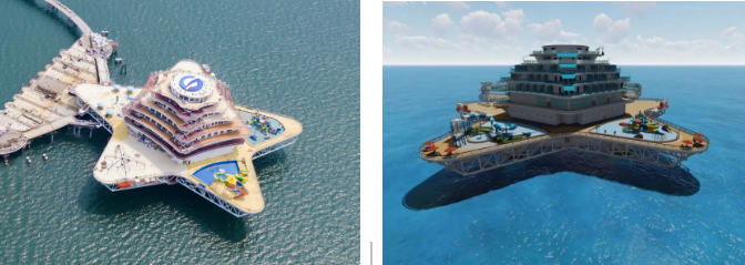 以濱海城市為依托,該方案重點(diǎn)建設(shè)需求旺盛、基礎(chǔ)好、見(jiàn)效快的“海洋文旅+深海養(yǎng)殖+海上風(fēng)電+海洋信息管網(wǎng)”4個(gè)要素單元,釋放旅游、養(yǎng)殖、綠色能源耦合效應(yīng)。綜合體采用模塊化設(shè)計(jì)、區(qū)域化協(xié)同部署,由濱海向深遠(yuǎn)海帶狀輻射,布局建設(shè)游輪游艇群、養(yǎng)殖文旅平臺(tái)、深海養(yǎng)殖產(chǎn)業(yè)園、分布式海上風(fēng)電場(chǎng)及智能微電網(wǎng)、深海移動(dòng)養(yǎng)殖工廠和海洋信息管網(wǎng)等風(fēng)漁文旅結(jié)合項(xiàng)目。以郵輪游艇連接海上設(shè)施,構(gòu)建海上旅游娛樂(lè)交通網(wǎng),以中小型郵輪航線實(shí)現(xiàn)沿海城市綜合體間串聯(lián),構(gòu)建沿海城市海上旅游觀光帶,同時(shí)培育郵輪與康養(yǎng)休閑岸?;?dòng)融合模式,捕捉、帶動(dòng)、滿足多元化潛在消費(fèi)需求,打造風(fēng)漁文旅等一二三產(chǎn)業(yè)融合新業(yè)態(tài),形成沿海藍(lán)色海洋經(jīng)濟(jì)帶。