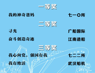 由中國(guó)船舶集團(tuán)黨群工作部指導(dǎo),中國(guó)船舶集團(tuán)新聞宣傳中心/中國(guó)船舶報(bào)社承辦的中國(guó)船舶集團(tuán)第二屆短視頻大賽圓滿落幕。經(jīng)過前期篩選,網(wǎng)絡(luò)投票,并特邀國(guó)務(wù)院國(guó)資委新聞中心、國(guó)防科工局新聞宣傳中心、中央電視臺(tái)、微博政務(wù)、中國(guó)船舶集團(tuán)黨群工作部專家評(píng)審,大賽最終評(píng)出一等獎(jiǎng)5部,二等獎(jiǎng)10部,三等獎(jiǎng)23部,同時(shí)評(píng)出優(yōu)秀組織獎(jiǎng)單位6家。名單如下,快來圍觀!