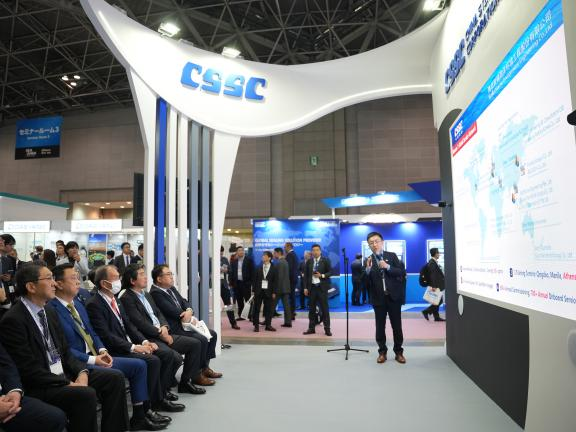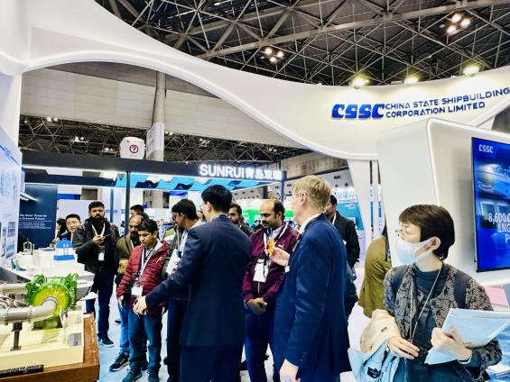 此次參展是集團(tuán)公司首次以整體形象亮相日本東京國際海事展,以“共筑未來”為參展主題,設(shè)置集團(tuán)總體區(qū)、低碳航運(yùn)解決方案區(qū)、低碳環(huán)保配套設(shè)備區(qū)、未來船型區(qū)共4個(gè)展示區(qū)域,重點(diǎn)展示了引領(lǐng)行業(yè)發(fā)展的新一代船舶產(chǎn)品、“綠色、智能”的配套設(shè)備,以及面向未來市場需求的船型設(shè)計(jì)方案,充分彰顯中國船舶集團(tuán)的國際化品牌形象和引領(lǐng)國際船舶科技發(fā)展的創(chuàng)新活力。