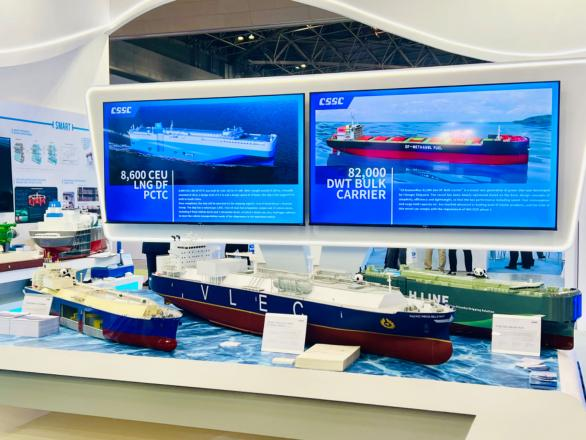 展會(huì)期間,國產(chǎn)大型郵輪、17.4萬立方米LNG船、8600車LNG雙燃料PCTC、9.9萬立方米VLEC、WinGD 9X92DF-2.0(-iCER)主機(jī)、船用LNG 供氣系統(tǒng)、船用碳捕捉系統(tǒng)、大口徑岸基智能裝卸系統(tǒng)等代表性產(chǎn)品悉數(shù)亮相,獲得海外市場高度關(guān)注。