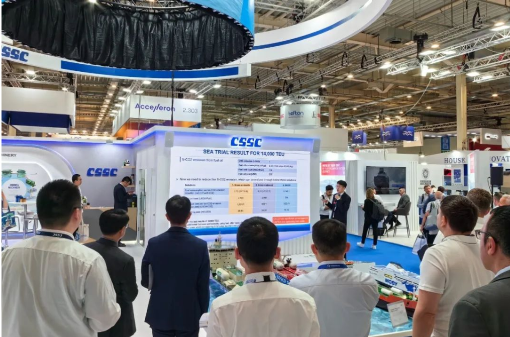 展會期間促成集團(tuán)公司多家成員單位船海項目成功簽約,共計超50億元人民幣,包括中船貿(mào)易、廣船國際與EPS公司4艘11萬噸LRII型LNG雙燃料油輪項目簽約、與ASP公司2艘5萬噸MR甲醇雙燃料油輪項目簽約,中船貿(mào)易、大連造船與CAPITAL公司2艘30萬噸VLCC建造項目簽約,另外還簽訂了40多億元新造船項目意向書;同時,參展成員單位在集團(tuán)公司展臺上開展了豐富的推介活動,包括江南造船“綠色船型家族”產(chǎn)品推介會、中船系統(tǒng)院“羅經(jīng)進(jìn)入光纖時代”產(chǎn)品推介會、七一一所“全球首個全流程船用碳捕捉系統(tǒng)案例分享會”,吸引了眾多國際船東、船級社和設(shè)備廠商前來觀摩,并共同探討未來合作機(jī)遇。
