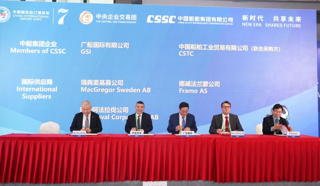 中國船舶集團有限公司黨組成員、副總經(jīng)理盛紀綱應(yīng)邀參加第七屆進博會暨虹橋國際經(jīng)濟論壇開幕式,出席11月6日下午舉行的第七屆進博會國資委中央企業(yè)交易團中國船舶交易分團采購集中簽約儀式并致辭。