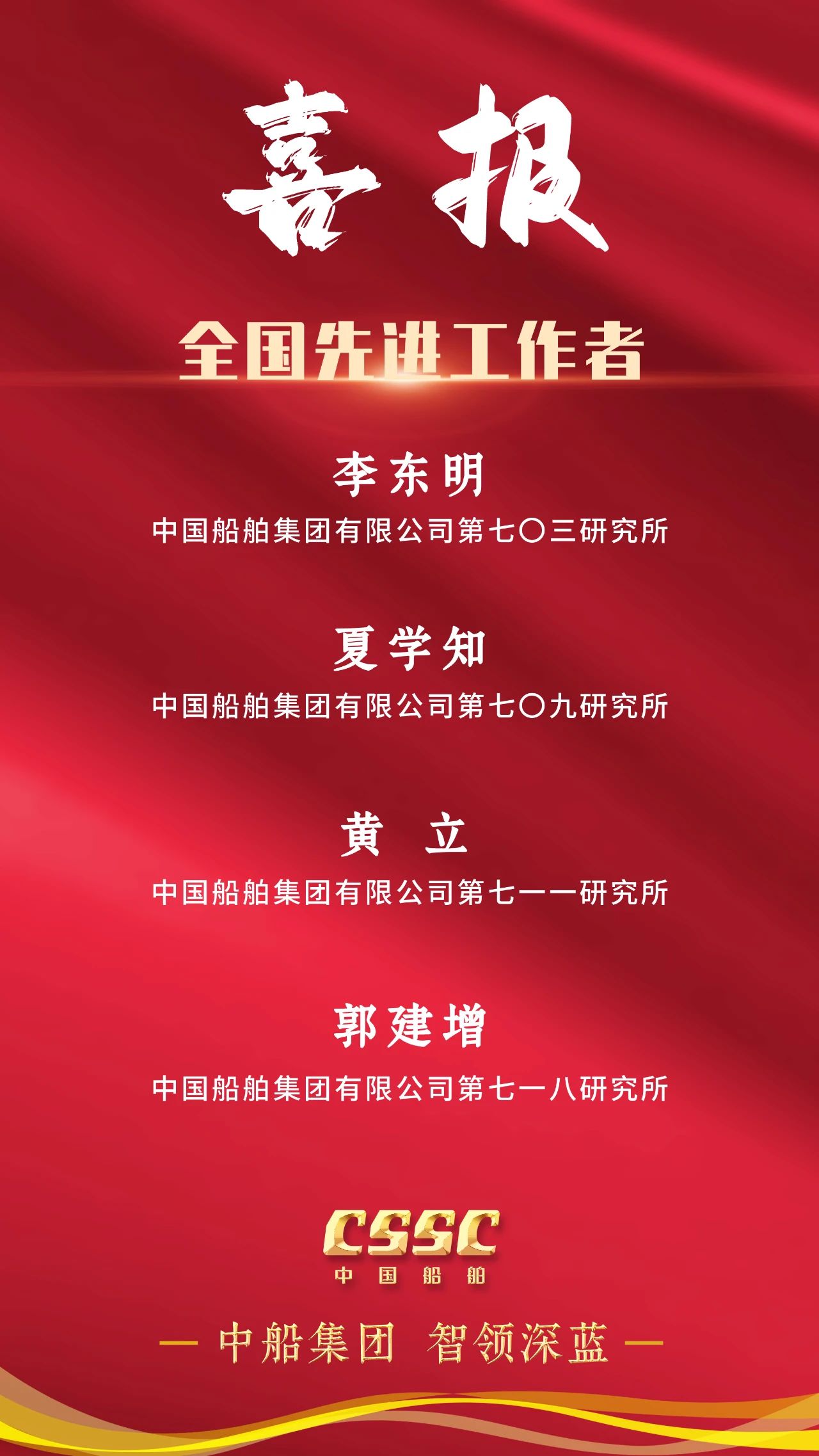 4月28日上午,慶祝中華全國(guó)總工會(huì)成立100周年暨全國(guó)勞動(dòng)模范和先進(jìn)工作者表彰大會(huì)在人民大會(huì)堂隆重舉行。大會(huì)宣讀了《中共中央、國(guó)務(wù)院關(guān)于表彰全國(guó)勞動(dòng)模范和先進(jìn)工作者的決定》。中船集團(tuán)5人被授予全國(guó)勞動(dòng)模范稱(chēng)號(hào),4人被授予全國(guó)先進(jìn)工作者稱(chēng)號(hào)。