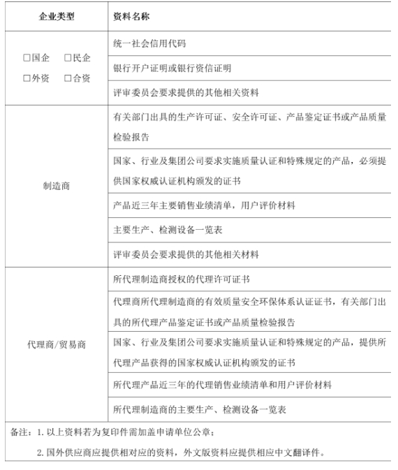 4.對(duì)于提供審核資料弄虛作假、被國(guó)家相關(guān)部門、同行業(yè)央企納入黑名單或列為不誠(chéng)信人的企業(yè)及企業(yè)法人不予準(zhǔn)入。