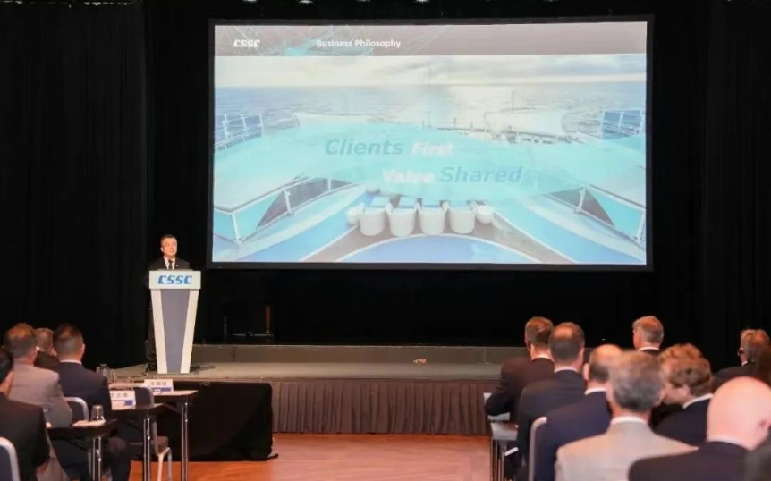 王國強向全球主要船東和合作伙伴宣講了“中船集團 智領深藍”的企業(yè)品牌理念,闡述了中船集團未來十年的“高端化、綠色化、智能化、共享化”戰(zhàn)略規(guī)劃方向,以及與全球廣大船東用戶“開放合作、共創(chuàng)共贏”的經(jīng)營理念。他強調(diào),作為全球船舶市場綠色低碳發(fā)展的引領者、踐行者和先行者,中船集團始終堅持創(chuàng)新驅(qū)動的發(fā)展理念,以構建海洋命運共同體為使命,持續(xù)加快核心技術協(xié)同攻關,不斷深化與全球航運企業(yè)及國際海事界的多贏合作。