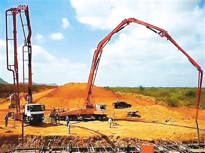 圖為三一重工的工程機械設(shè)備在肯尼亞蒙內(nèi)鐵路建設(shè)現(xiàn)場施工。
