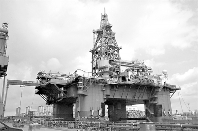 大連船舶重工集團(tuán)海洋工程有限公司建造的半潛式鉆修井平臺,標(biāo)注著中國制造新高度。本報(bào)記者 馮蕾攝/光明圖片
