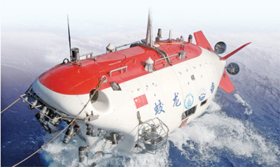 2012年6月15日,蛟龍?zhí)栞d人潛水器進行7000米級海試首次下潛試驗。(人民視覺)