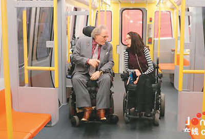 “現(xiàn)在,平生第一次,我不再需要別人幫我進到車廂里了。這種獨立性對我來講至關(guān)重要?!瘪R薩諸塞州波士頓地鐵老乘客懷特先生坐著輪椅在車廂里溜達了一圈,對地鐵新車充滿期待。當?shù)貢r間4月3日,在美國波士頓舉行的橙線地鐵模型車首次展出活動上,美國民眾感受了來自中國的地鐵車廂。更寬敞、美觀,設(shè)計更加人性化,讓美國民眾為之點贊。“車廂內(nèi)外側(cè)都有專門的按鈕,可以讓坐在輪椅里的人在上、下車的時候直接啟動車廂底部的專用輪椅車平板,通行完全無障礙?!睉烟叵壬f。
