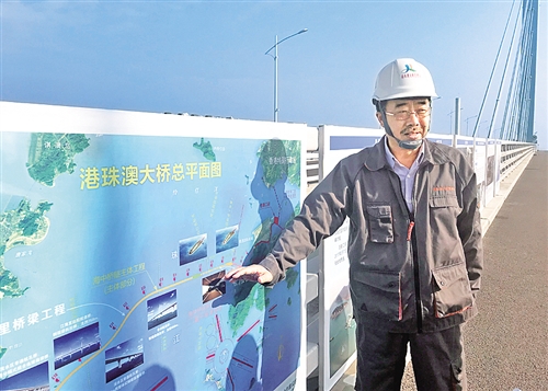 港珠澳大橋管理局總工程師蘇權科介紹港珠澳大橋的規(guī)劃圖。(佘惠敏 攝)