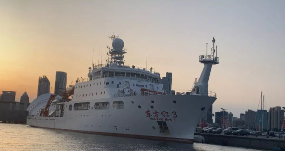 “東方紅3”號(hào)是我國自主創(chuàng)新研發(fā)的新一代深海大洋綜合科學(xué)考察實(shí)習(xí)船,2013年由教育部立項(xiàng)建設(shè),2019年6月交付使用,是國內(nèi)首艘、國際上第四艘獲得DNV GL簽發(fā)的船舶水下輻射噪聲最高等級(jí)——靜音科考級(jí)(SILENT-R)證書的海洋綜合科考船,也是世界上獲得這一等級(jí)證書排水量最大的海洋綜合科考船。