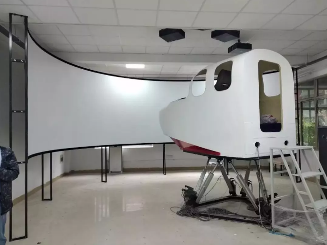 ????該平臺(tái)主要由地效翼船駕駛艙、六自由度運(yùn)動(dòng)平臺(tái)、工控機(jī)、激光高清工程投影機(jī)、180°金屬環(huán)形硬幕、圖像處理器、飛行仿真軟件等組成。駕駛座艙1:1復(fù)制交通運(yùn)輸部指定的唯一教具——翔州1型地效翼船,在環(huán)境上保持了與真實(shí)地效翼船的高度一致,180°金屬環(huán)形硬幕最大程度再現(xiàn)全球各大水域的真實(shí)場(chǎng)景,而六自由度運(yùn)動(dòng)平臺(tái)真實(shí)實(shí)現(xiàn)了地效翼船升沉、俯仰、滾轉(zhuǎn)等動(dòng)作,給學(xué)員身臨其境的地效翼船駕控感受。