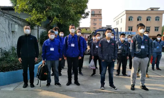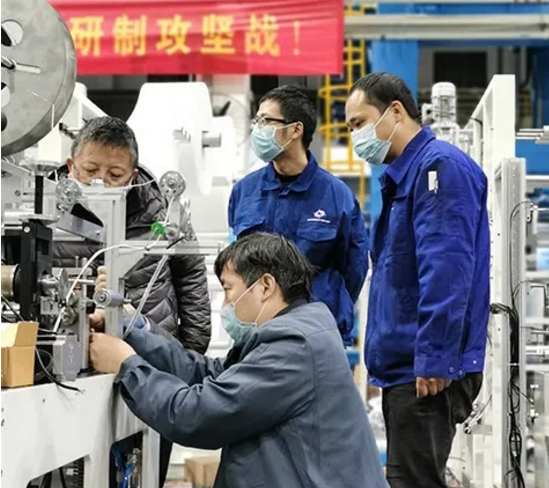 ????帶隊(duì)逆行的是鵬力塑造副總經(jīng)理王仕杰,一人承擔(dān)所有的外圍協(xié)調(diào)工作,不僅管好技術(shù)團(tuán)隊(duì)的吃住行和安全防疫工作,還找到了非常緊缺的試機(jī)無(wú)紡布原料和口罩耳繩焊接機(jī),極大地支撐了后續(xù)研制生產(chǎn)工作。