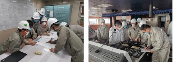 ????試航期間,滬東中華試航領(lǐng)導(dǎo)小組臨時黨支部與上海LNG技術(shù)部試航臨時黨支部,開展了“海上戰(zhàn)疫”共建活動,做細(xì)做實試航期間的疫情防控工作。