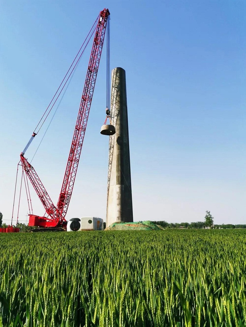 ????近日,中國(guó)海裝首臺(tái)采用140米輪轂高度鋼混塔架的機(jī)組完成吊裝。相比于100米高度以?xún)?nèi)的傳統(tǒng)鋼制塔架,每年可增加近500小時(shí)的發(fā)電收益。中國(guó)海裝作為國(guó)內(nèi)鋼混塔架的先行者、分片式鋼混塔架的代表,此次推出的140米輪轂高度鋼混塔架運(yùn)行穩(wěn)定,同時(shí)具有抗疲勞能力強(qiáng)、便于運(yùn)輸、免維護(hù)等多方面優(yōu)勢(shì),是一款具有高可靠性、高技術(shù)性、高經(jīng)濟(jì)性的“三高”產(chǎn)品。