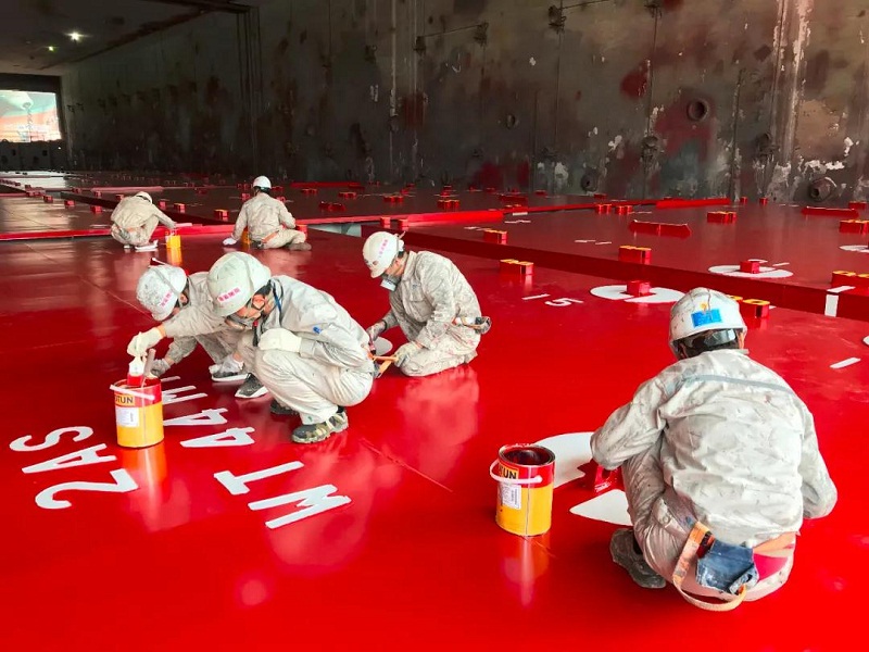 ????最“驚心動魄”的要屬最后一批到廠的16塊艙口蓋。4月20日回廠,21日沖砂報(bào)驗(yàn)結(jié)束,留給涂裝二部的時間不到5天,而以往這些工作至少需要8天。該部門當(dāng)時根據(jù)天氣、溫度、油漆廠商的技術(shù)服務(wù),積極與船東協(xié)商最終敲定了36小時的淋水時長,打破了以往最短時間的紀(jì)錄,最終一次性取得成功。