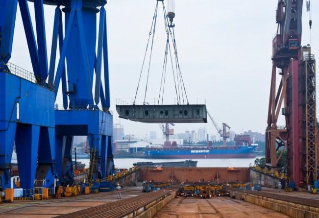 8月5日,在長(zhǎng)興造船1號(hào)塢內(nèi)建造的23000箱系列4號(hào)船正式出塢,該船以最佳完整性出塢,創(chuàng)造了已建系列船中最短塢期紀(jì)錄。