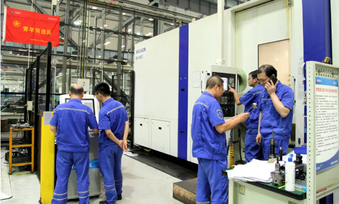 凌晨三點(diǎn)的中國(guó)船舶集團(tuán)旗下重慶紅江聯(lián)合廠房,室外,三伏天近40℃的高溫帶來(lái)的酷熱并沒有因入夜而降下來(lái);室內(nèi),機(jī)床轟響燈火通明,一號(hào)車間最先進(jìn)的三臺(tái)臥式加工中心開足馬力全速運(yùn)轉(zhuǎn)。