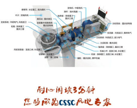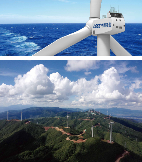 中國船舶集團擁有國內實力強勁的自主研發(fā)與生產(chǎn)體系,具備強大的機、電、液、控一體化裝備制造服務保障能力,形成了從葉片、齒輪箱、發(fā)電機、控制系統(tǒng)到機座、機架、塔筒、輪轂等全系列制造能力,從資源開發(fā)、零部件制造、整機研發(fā)、工程安裝、運維服務等全產(chǎn)業(yè)鏈保障能力,是我國唯一具備較完整風電裝備研制生產(chǎn)服務保障體系的專業(yè)化集團。