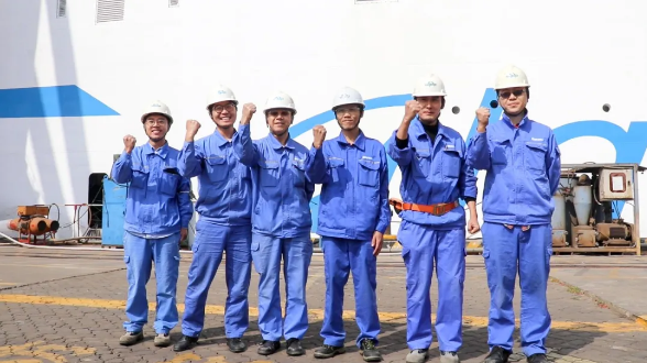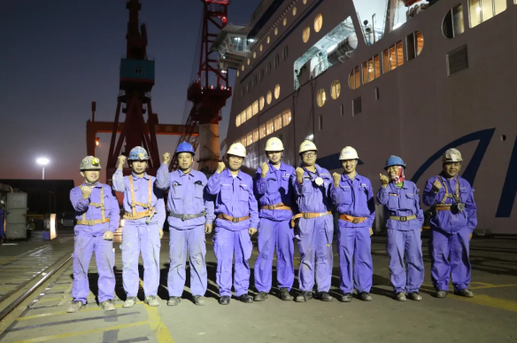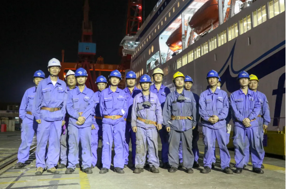 到目前為止,該船還剩下較多船東、船檢的報驗手尾工作,這些工作需要逐條逐項進行整改落實,這些都需要現(xiàn)場技術團隊快速明確方案,快速和船東、船檢溝通并形成共識。誰說技術都坐辦公室?現(xiàn)場技術團隊全天候服務生產,他們沖得上、拿得下、敢擔當、能作為,是解決現(xiàn)場疑難雜癥的“定心丸”!