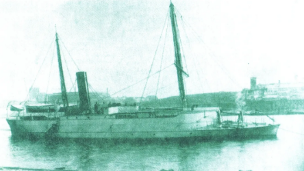 △我國第一艘自行設(shè)計(jì)建造的淺水炮艇“海東雄”號(hào)(蚊子船)
