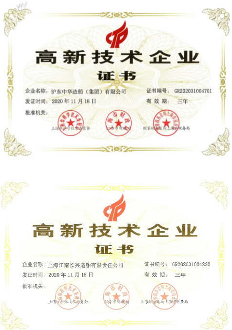 日前,中國船舶集團旗下滬東中華及其控股公司上海江南長興造船有限責任公司雙雙收到了由上海市科學(xué)技術(shù)委員會、上海市財政局、國家稅務(wù)總局上海市稅務(wù)局聯(lián)合頒發(fā)的高新技術(shù)企業(yè)證書。