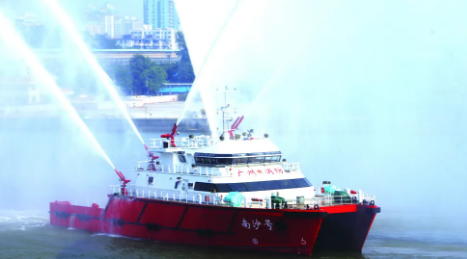 2010年12月28日,廣船國際為南沙區(qū)建造的“南沙號”消防船投入使用。“南沙號”消防船總長46米,型寬15米,排水量達到680噸,航速可達32.4公里/小時,共設(shè)置有6門水炮。其中,2門主炮射程可達到150米,4門副炮射程可達到130米;還設(shè)置了全船水幕保護系統(tǒng),在火災(zāi)現(xiàn)場可有效保護自身安全。“南沙號”消防船是當時國內(nèi)最大雙體專勤消防船,大大增強了對船舶火災(zāi)、石化碼頭、油庫火災(zāi)的撲救能力。