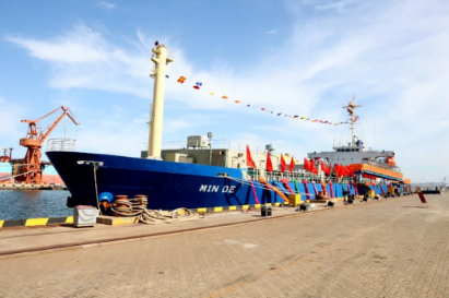 2020年,中國船舶集團旗下大船集團將散貨船改裝而成的“民德”號交付。這是全球首制、具有完全自主知識產(chǎn)權(quán)的舷側(cè)開孔式養(yǎng)殖工船,具有魚類養(yǎng)殖、餌料加工、活魚運輸?shù)裙δ?。交船的同時,大船集團與東方漁業(yè)簽約10+8艘大型養(yǎng)殖工船項目。